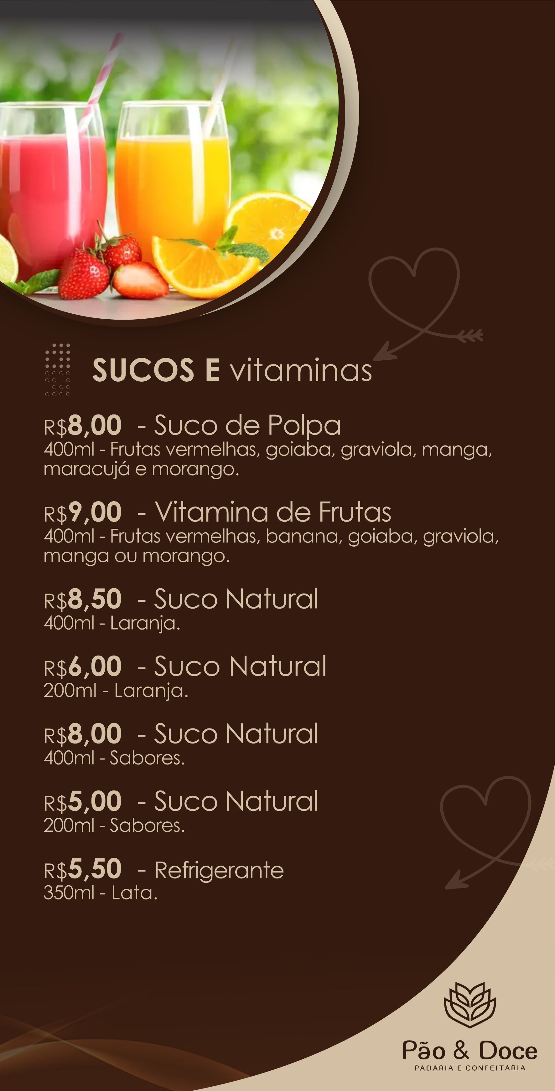 Lanches Quentes | Lanches Frios | Bebidas Quentes | Bebidas Geladas | Sucos e Vitaminas Sucos & Vitaminas